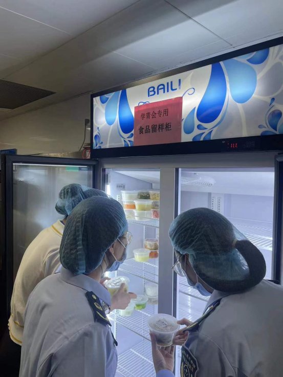 三是亲近食物操做加工。市场监视办理驻点人员每天对从业人员和厨房设备设备的卫生、食物加工操做过程、食物留样能否合适食物平安规范等方面进行按时放哨。全力保障每一环节食物平安到位。为检测餐饮具的清洗消毒的完成环境,保障人员每天随机抽取餐饮具,开展阴离子残留和概况干净度快速检测。