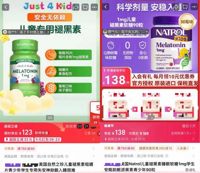 目前,“儿童褪黑素”类产物次要正在线上平台发卖,且大多为跨境进口产物。记者浏览发觉,多家店肆为保健品,但产物及包拆上均未标注国度药监局对保健品的专属“蓝帽子”标识。即便如斯,部门线上店肆的该类产物销量已冲破万件,背后躲藏的风险不容轻忽。